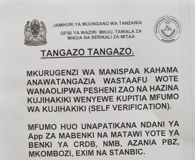 Tangazo la Uhakiki wa Taarifa kwa Wastaafu